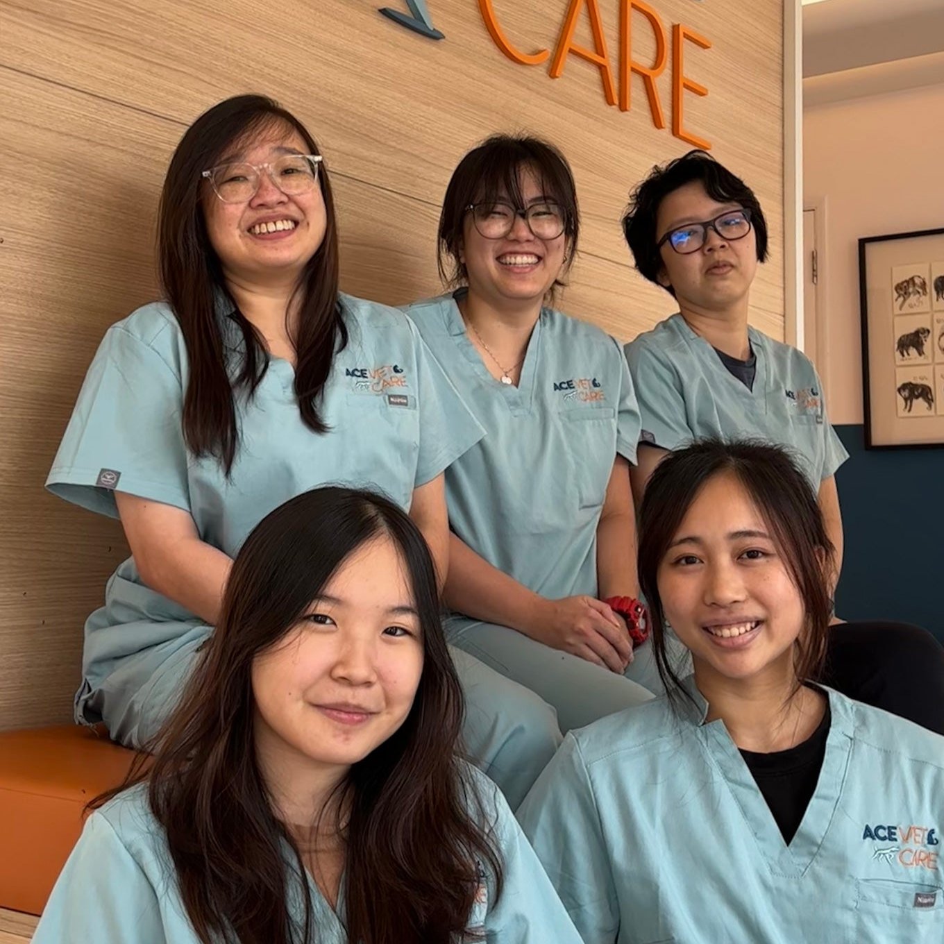 Wei Juan (Manager), Felicia & Valerie (Vet Techs), Viveca (Client Care), Vera (Vet Tech)